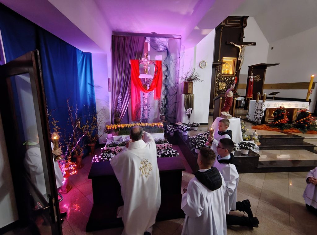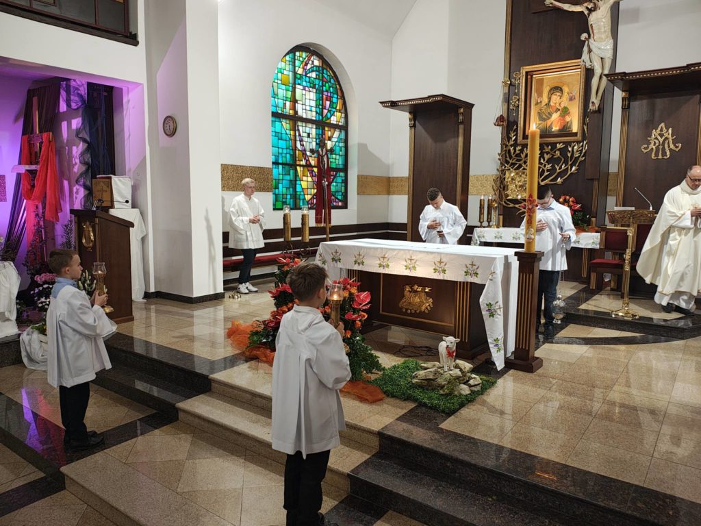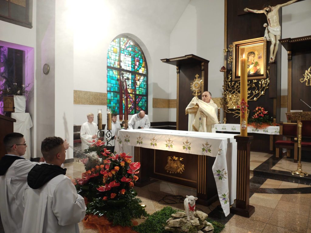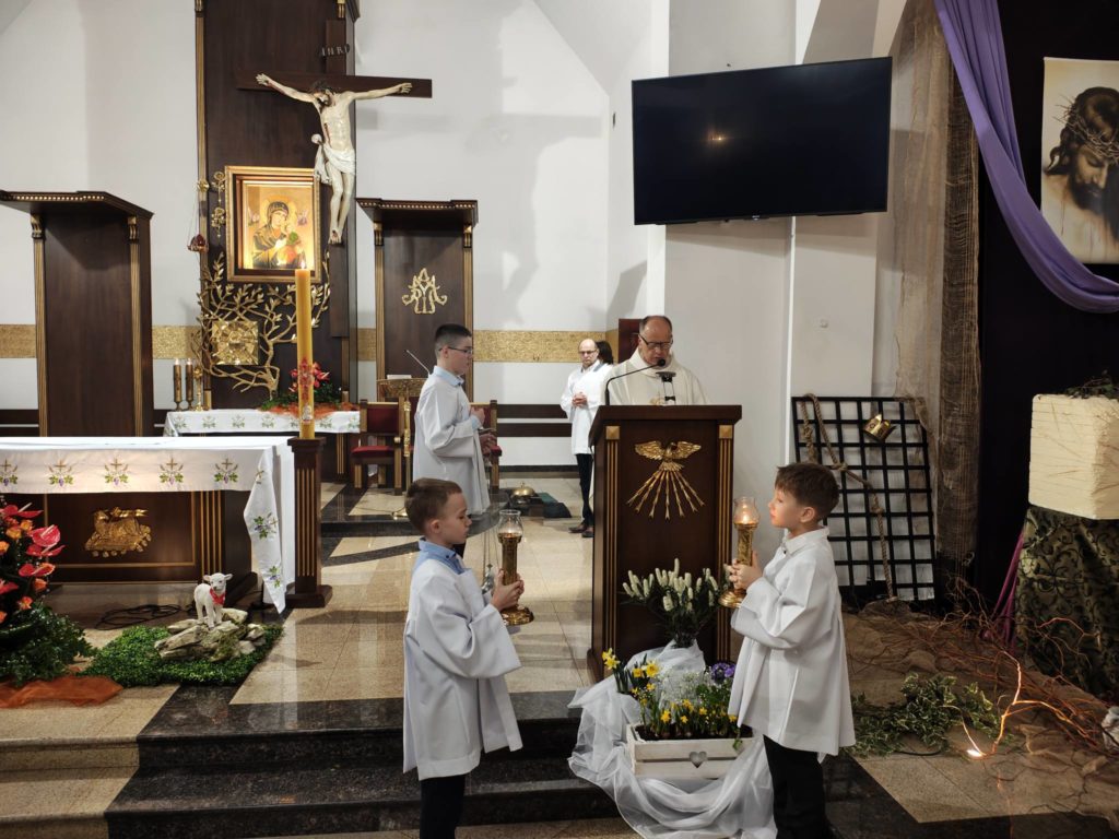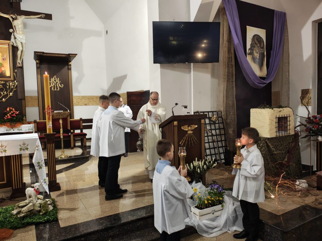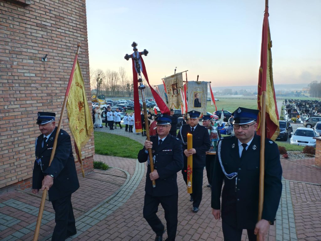 Poranek Zmartwychwstania w naszej parafii przebiegał w otoczeniu przepięknej pogody korespondującej z blaskiem nowego życia, jakie niesie nam Chrystus, a także bogactwa wspólnoty parafialnej, która pięknie uwidoczniła się w zaangażowaniu straży pożarnej, parafialnych grup duszpasterskich, liturgicznej służby ołtarza, a także licznej obecności parafian. Nich Bóg w tym wszystkim będzie uwielbiony.